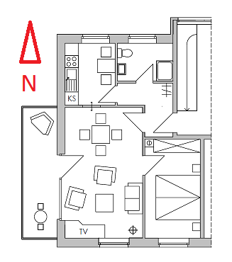 Unsere modern eingerichtete Nichtraucher-Ferienwohnung liegt in der ersten Etage hat 50m² Wohnfläche, ist für zwei Personen und befindet sich in Wittdün, Köhns-Übergang.